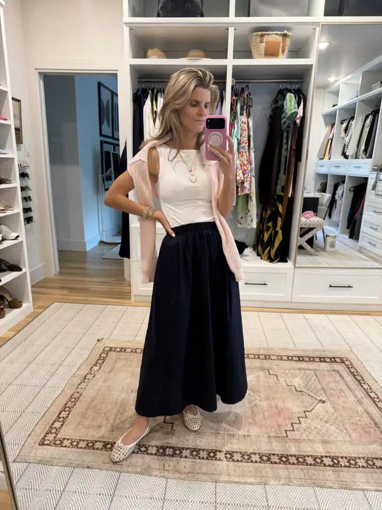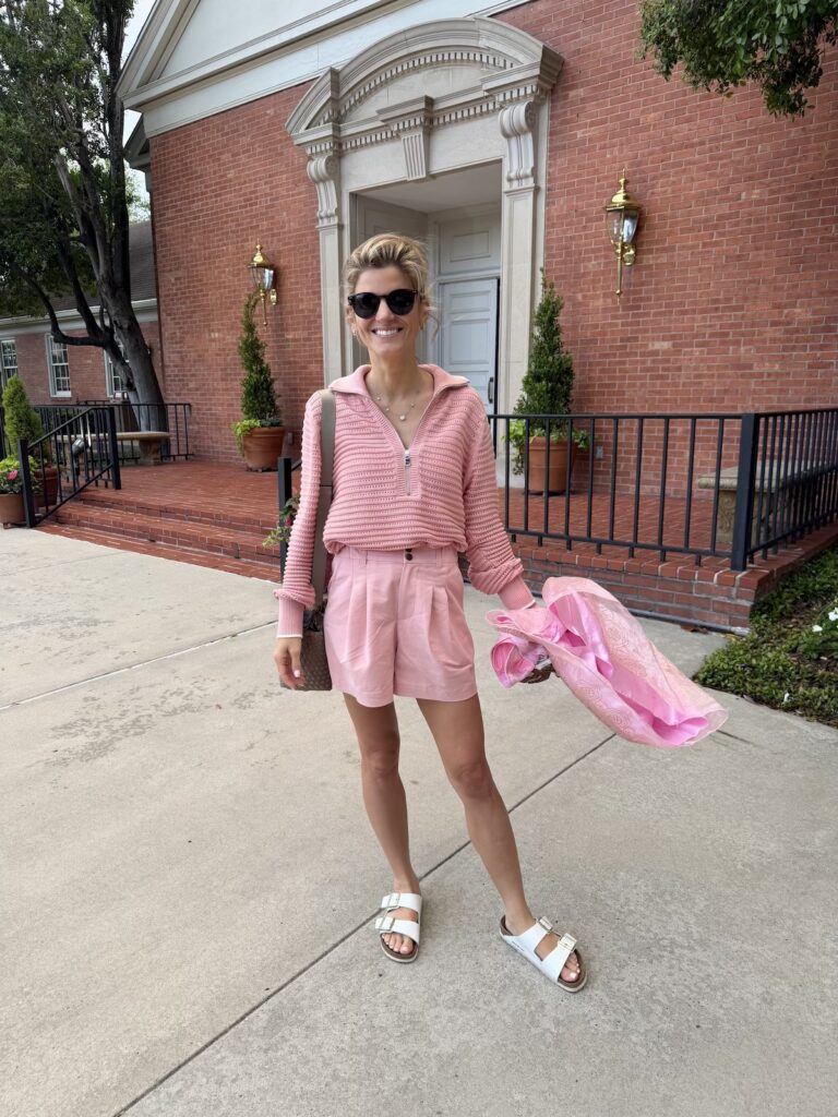 Although not technically a matching set, this outfit from Varley is also giving me life. I’m so happy that knit shorts are coming back in style this season. Not only are they super comfy, they’re easy to run around in as a mom. Honestly, key for me. Plus, how pretty is this pink color??