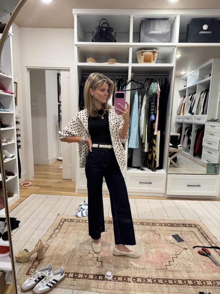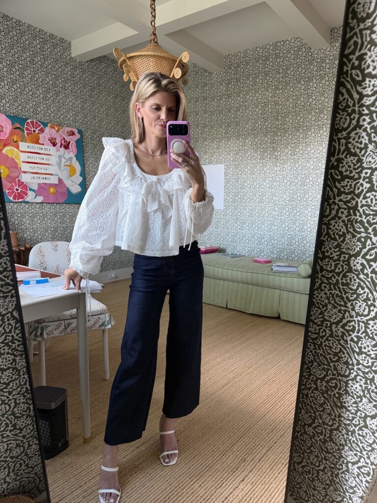 This has been my reset whenever I feel stuck. A great pair of jeans instantly makes everything feel grounded, and pairing them with something a little more feminine—like an eyelet or flutter sleeve top—adds just enough interest. It’s simple, but it always works. This is the outfit I throw on when I want to feel like I tried… without actually trying that hard.