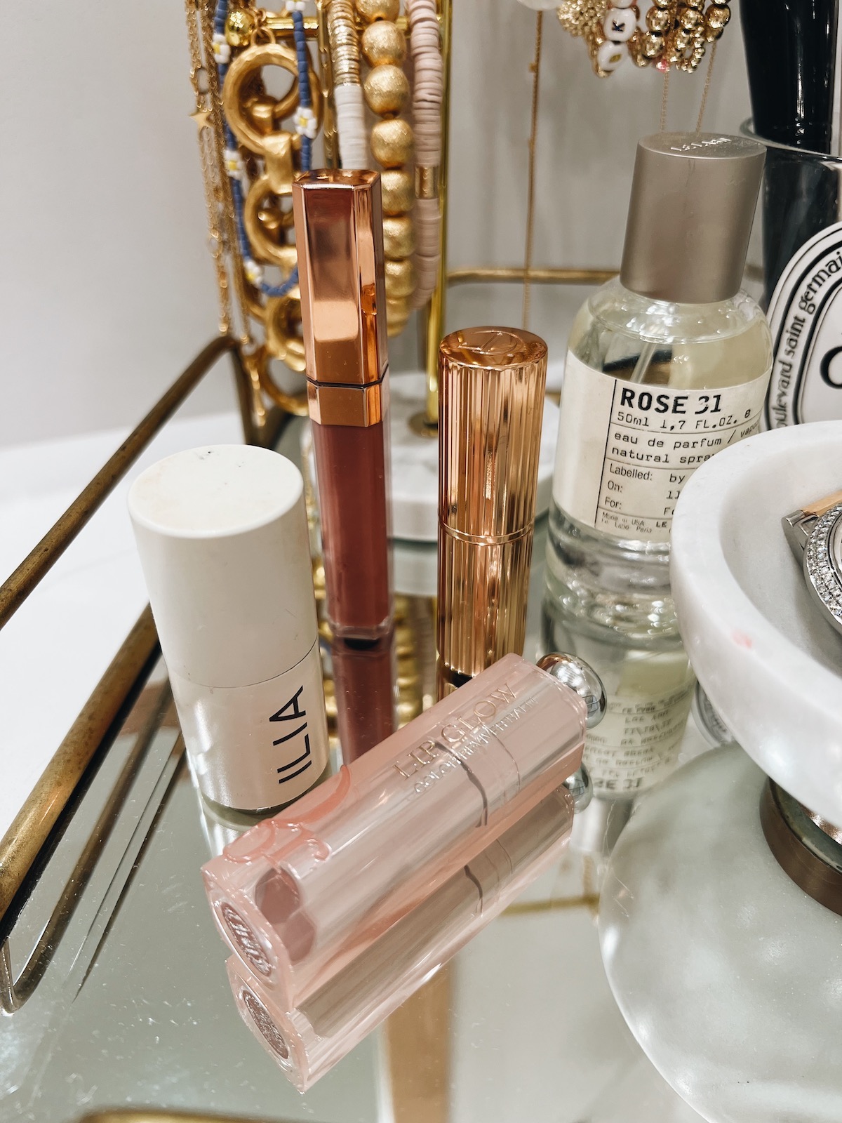 It’s funny because as I look at the lipsticks in my everyday routine, I recognize that I tend to stick to similar shades. I’ve sort of just figured out what works for my skin tone and don’t try to reinvent the wheel. However, I do like to have a rotation of creamy textures, glosses, balms, and even a multi-stick so I can choose which one works for me depending on my mood/the day.
