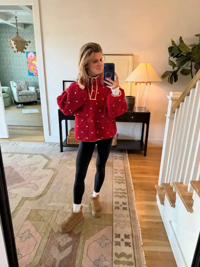 If you want something quick and easy to grab to make you feel festive for Valentine’s Day, this floral set from Target is super affordable and way cute. Another must for vday is this red heart fleece pullover. Seriously, so comfy!
