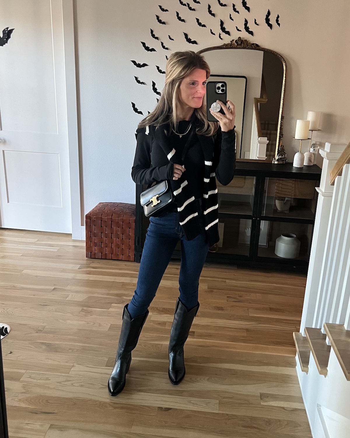 Also, I want to give a special shoutout to the cutest little bucket purse. It’s the perfect size to carry your essentials, and the black goes with everything. Plus, I feel like it can be dressed up or dressed down. 10/10 recommend it for under $50!