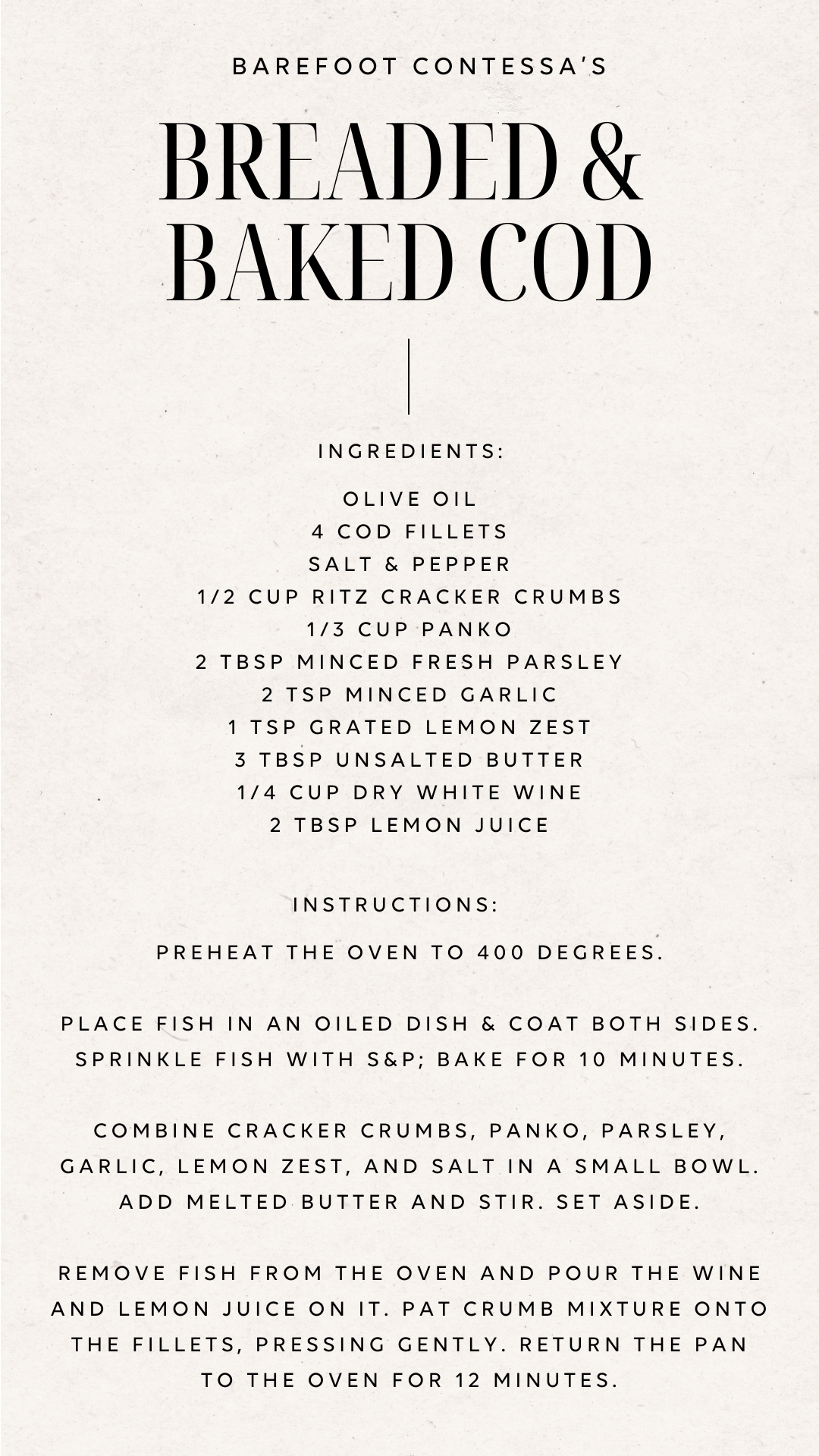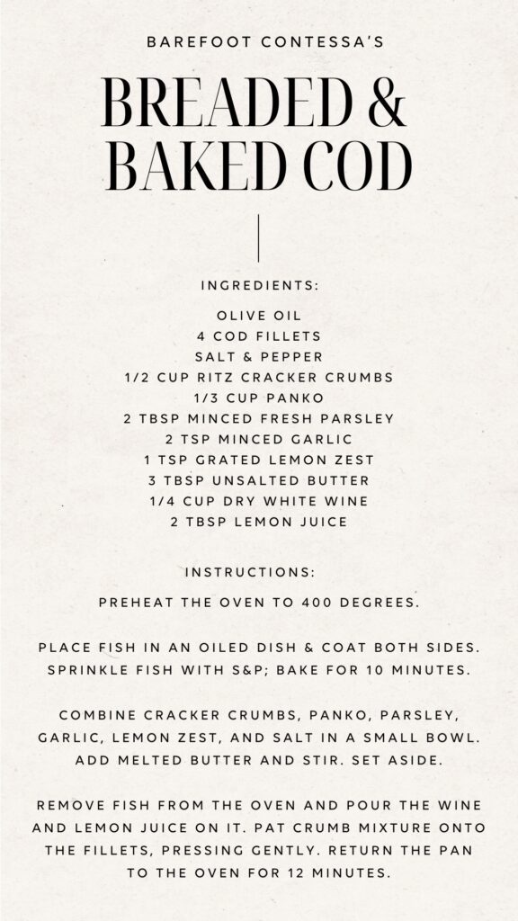 When a friend sent me this baked cod recipe from Barefoot Contessa, I was immediately interested in trying it. Even though I had a good guess my kids wouldn’t eat this (here’s a look at some kid-friendly meals I make for my kids), I’m a big fan of seafood. Plus, I’m always looking for new recipes to try. I’ve been really trying to get more creative in the kitchen, and I love trying recipes that come recommended by other people.