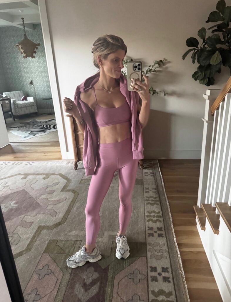 Lastly, I need to call out this entire look because I have been wearing it on repeat. You know I love a good activewear set, and this top is the perfect sports bra/tank combo. Plus, the color is beyond.