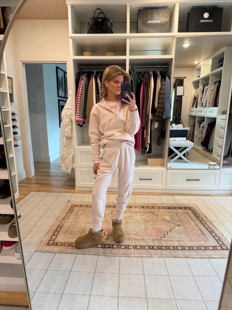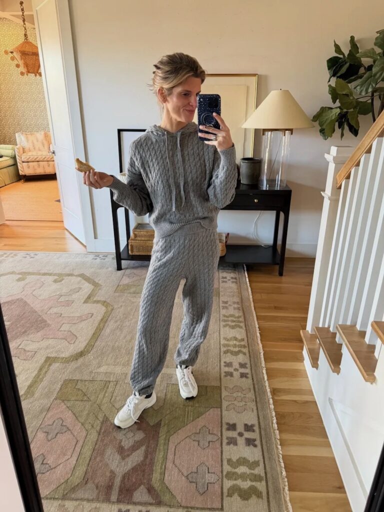 This scalloped short set is another obsession of mine right now. It’s such a different look from what I’d usually grab and I’m loving it. I wore it with my favorite fleece lined leggings recently to keep me warm – 10/10 recommend!