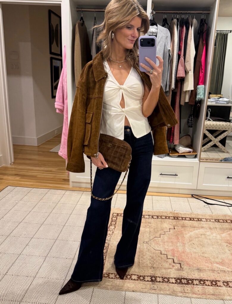 On the more elevated side, this viral knit top and the cashmere V-neck cardigan are effortless layering heroes. They’re the kind of basics that instantly make jeans feel more polished—especially paired with the perfect denim or even a cute little mini skirt for some slight edge.